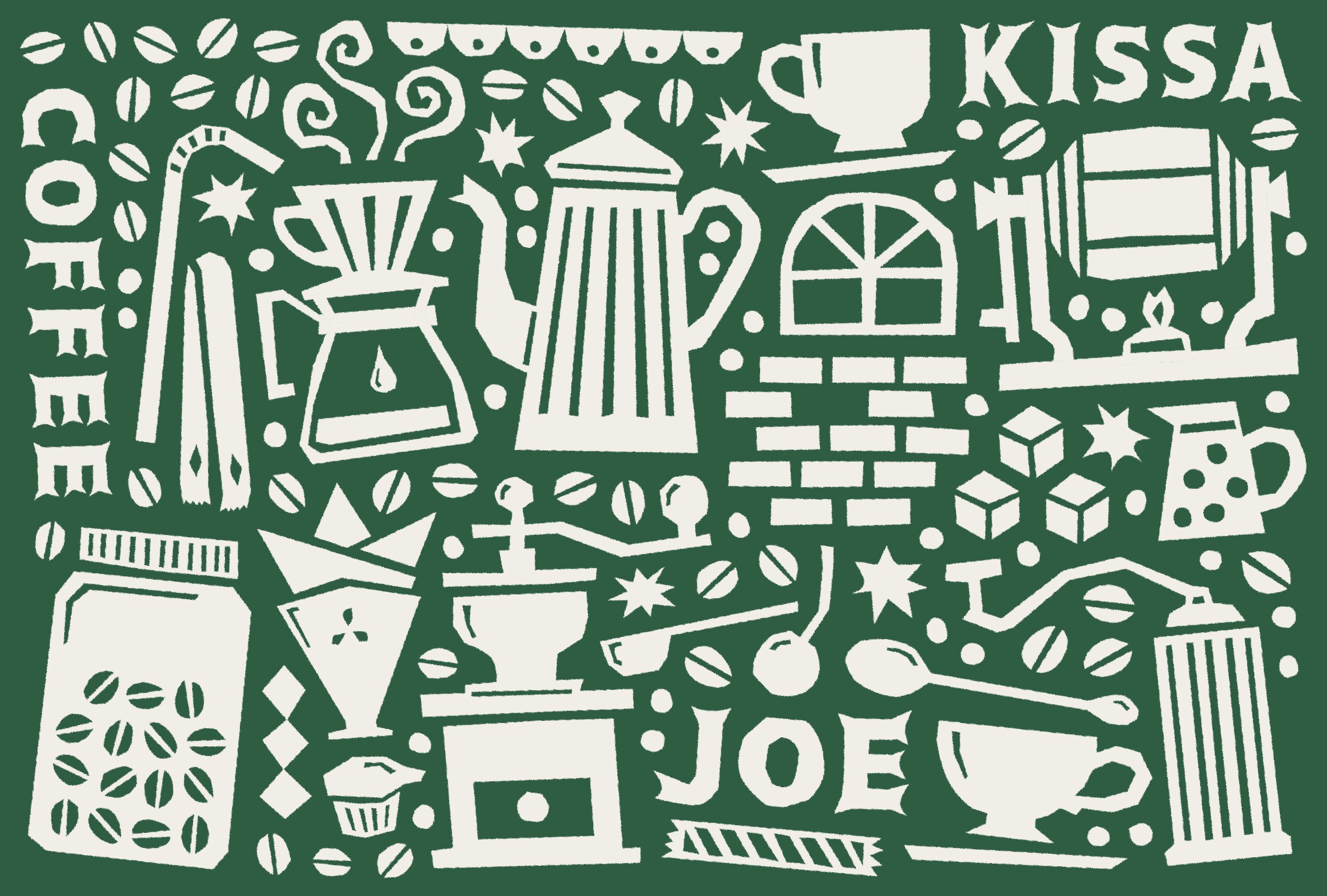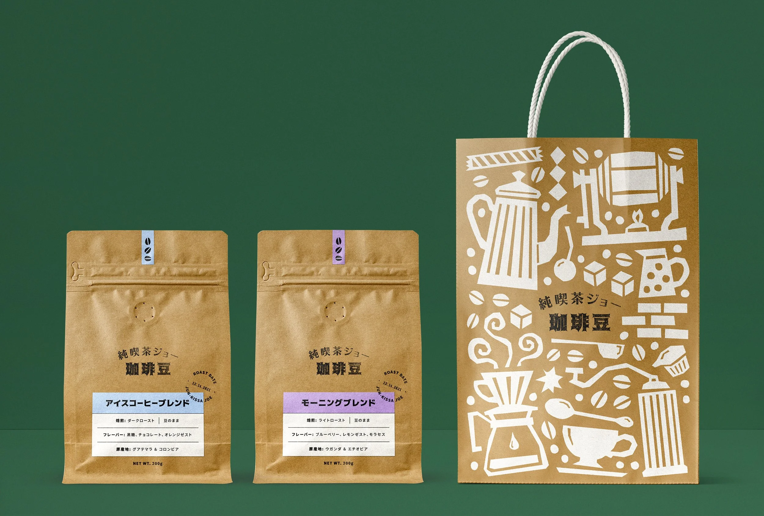 A coffee shop and packaging inspired by my love of kissaten. Kissatens are Japanese-style tea and coffee shops, often in the Showa era (1926–1989) style, similar to the Midcentury illustration style. It is dying out in numbers because they are often privately owned by the older generation, and since the 90s, there’s been a rise of Western-style cafes and chain coffee shops all over Japan. The shop interior is a modern take on the kissaten, while the packaging is inspired by Showa and Midcentury style.